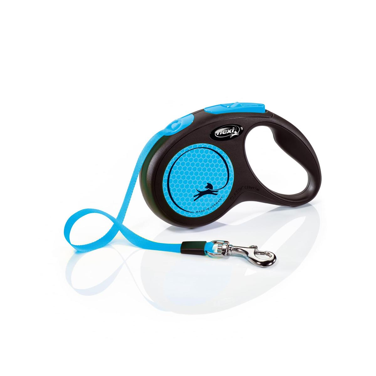 Flexi New Neon Retractable Dog Leash Black and Neon Blue Small 5 m Tape