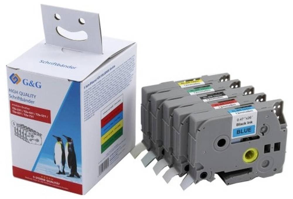 G&G 5-Pack Labeling Tape Compatible with Brother TZe-2/4/5/6/731 12 mm Various Colors