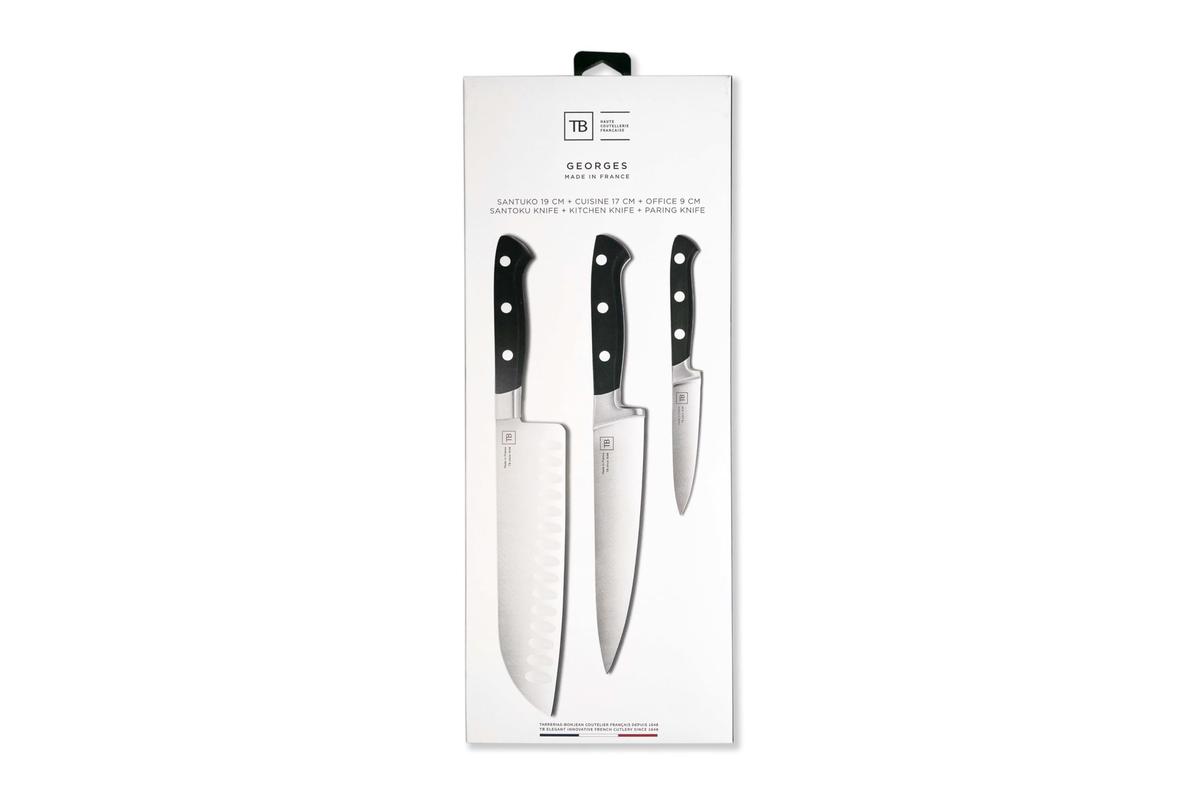 Georges Pom Gift Set 3 Knives Vegetable Knife, Chef's Knife, Santoku Knife