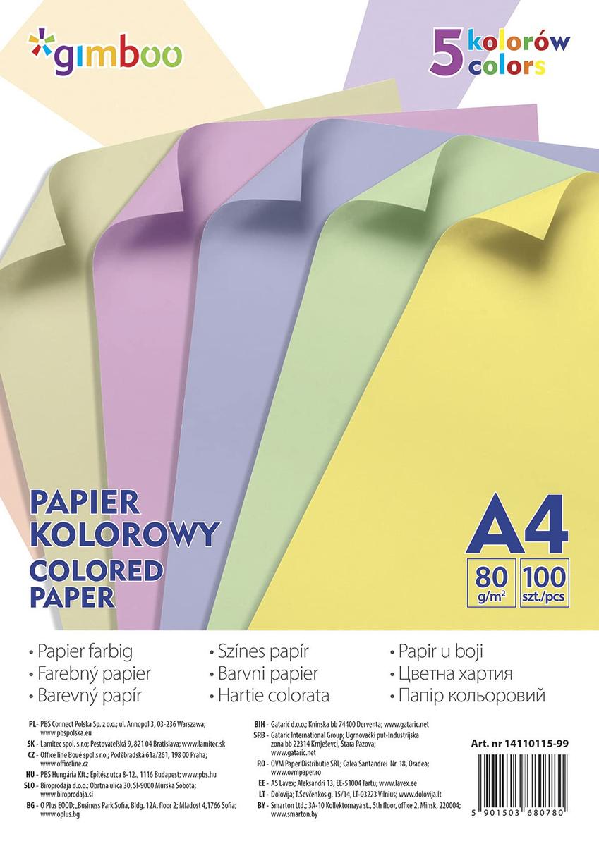 Gimboo Coloured Paper A4 80 gsm Mix Pastel Colours 100 Sheets