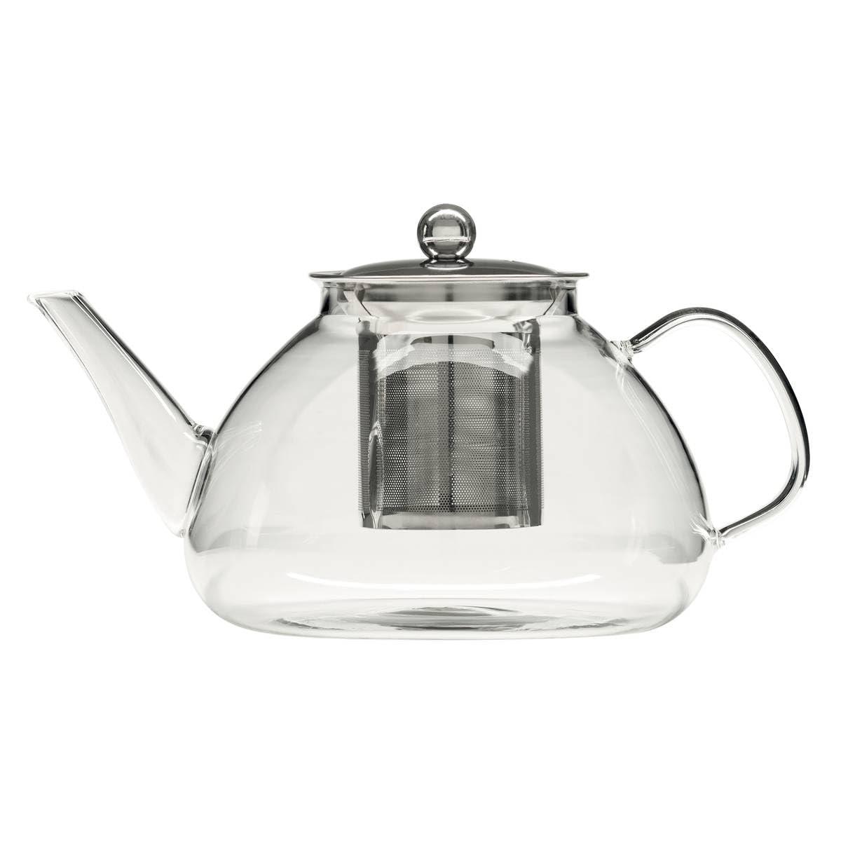 Μια γυάλινη κανάτα 1.3L με σουρωτήρι τσαγιού, ιδανική για τους λάτρεις του τσαγιού. Μπορεί να παρασκευάσει έως 6 φλιτζάνια τσαγιού ταυτόχρονα. Η κανάτα έχει ένα ισχυρό χερούλι και καλά εφαρμόζον καπάκι για ασφαλή και βολική μεταφορά. Συνοδεύεται από ένα μεταλλικό σουρωτήρι για την παρασκευή τσαγιού ή φυτικών μιγμάτων. Η κανάτα έχει στόμιο για εύκολη και ακριβή χύση, και το καπάκι βοηθά να διατηρεί το ποτό ζεστό για περισσότερο