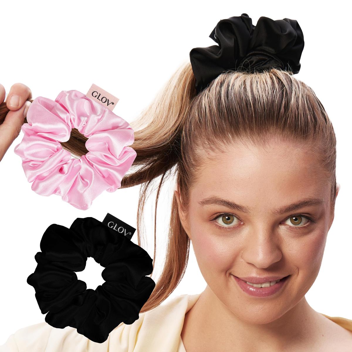 GLOV Satin Scrunchies Set 2 Pieces Pink and Black Hair Accessories