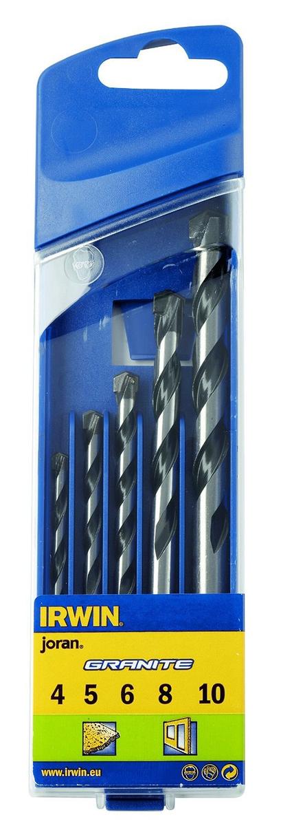Granite drill set in plastic package. 4, 5, 6, 8, 10 mm.
