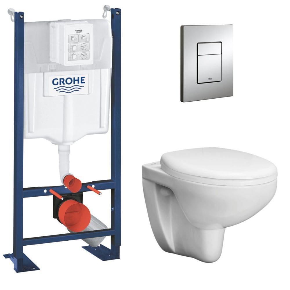 GROHE Toilet Set Concealed Frame BauCeramic Rimless Toilet Bowl Flush Cover Push Button