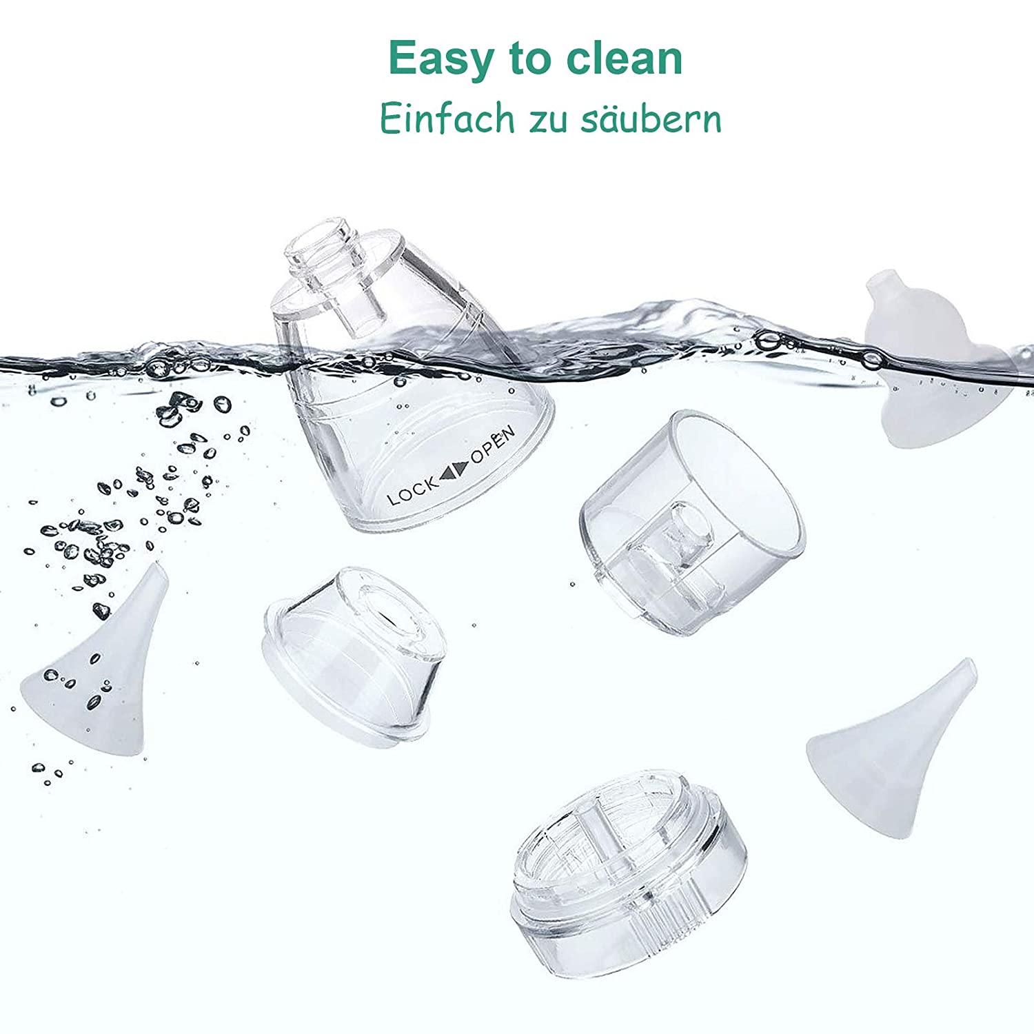 Einfach zu reinigenAlle Teile sind abnehmbar. Es wird empfohlen, sie mit warmem Seifenwasser zu reinigen. |