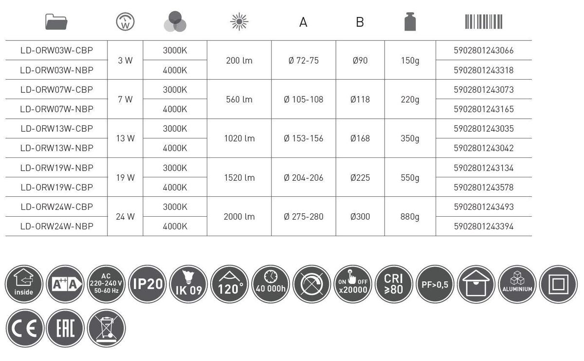 GTV Oris Plus LED Downlight 7W 560 Lumen 3000K Θερμό Λευκό IP20 Λευκό