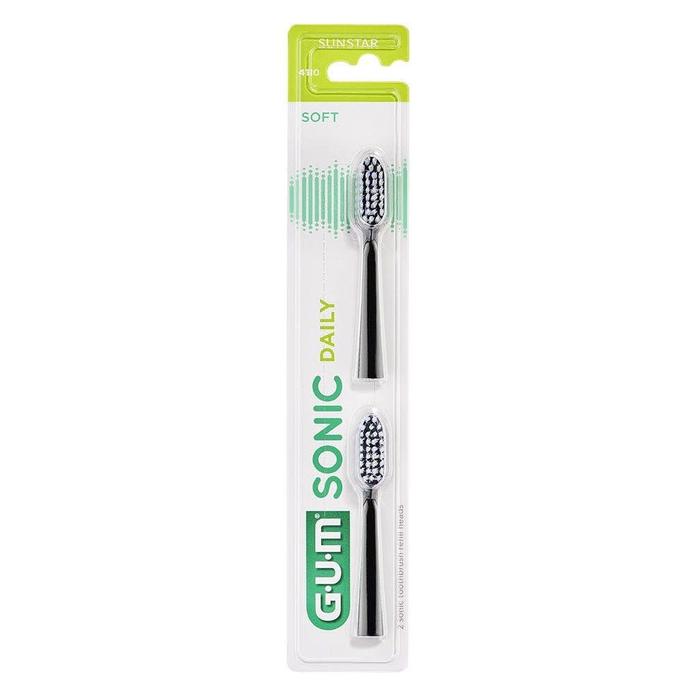 GUM Sonic Daily 4110 Μαλακές Κεφαλές Οδοντόβουρτσας Μαύρο - Πακέτο 2 Τεμάχια