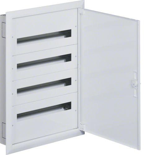 Rozdzielnica moduowa pochodzi z bogatego asortymentu marki HAGER POLO. Firma projektuje urzdzenia, ktrych podstaw jest zaawansowana technologia, ktra zarazem jest przyjazna uytkownikowi poprzez prosty monta i atwo w obsudze. Rozdzielnica moduowa sprawdzi si perfekcyjnie w budownictwie komercyjnym, ze wzgldu na wysok jako materiau, z ktrego zostaa wykonana. Stalowa obudowa dodatkowo podkrela trwao produktu. Urzdzenie skada si z 4 rzdw, ktry kady ma 24 moduy. Rozdzielnica jest wyposaona w standardowe none szyny DIN o szerokoci 35 mm, midzy ktrymi jest odstp 150 mm. Ponadto produkt posiada zaciski rubowe PE/N oraz pask ramk maskujc. Urzdzenie jest dostpne w kolorze biaym o numerze RAL 9010. Rozdzielnica moduowa ma stopie ochrony IP30, przez co stosuje si j wewntrz pomieszcze. Dodatkowo zostaa ona wyprodukowana w klasie ochronnoci I. Produkt montuje si podtynkowo, a dziki gbokoci, ktra wynosi 110 mm, moe on by instalowany w wikszoci cian. Pozostae wymiary rozdzielnicy to: 770 mm wysokoci i 550 mm szerokoci.