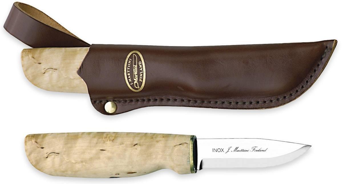 Handy Knife Stainless Steel Blade Curly Birch Handle Leather Sheath