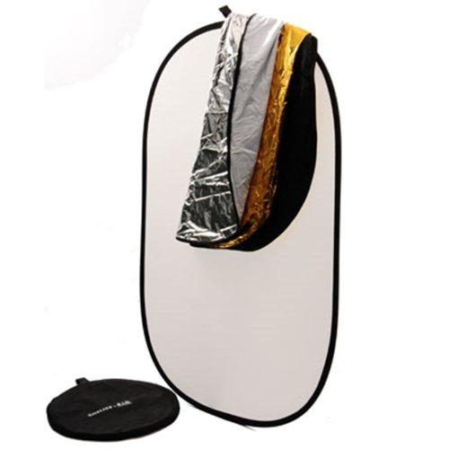 The base reflector is white diffuser. Additional covers can be fastened with velcro. Following covers are included: white, black, silver, golden. Ideal size for taking full-size portraits outdoors. Reflector can be folded for transport, case is included.