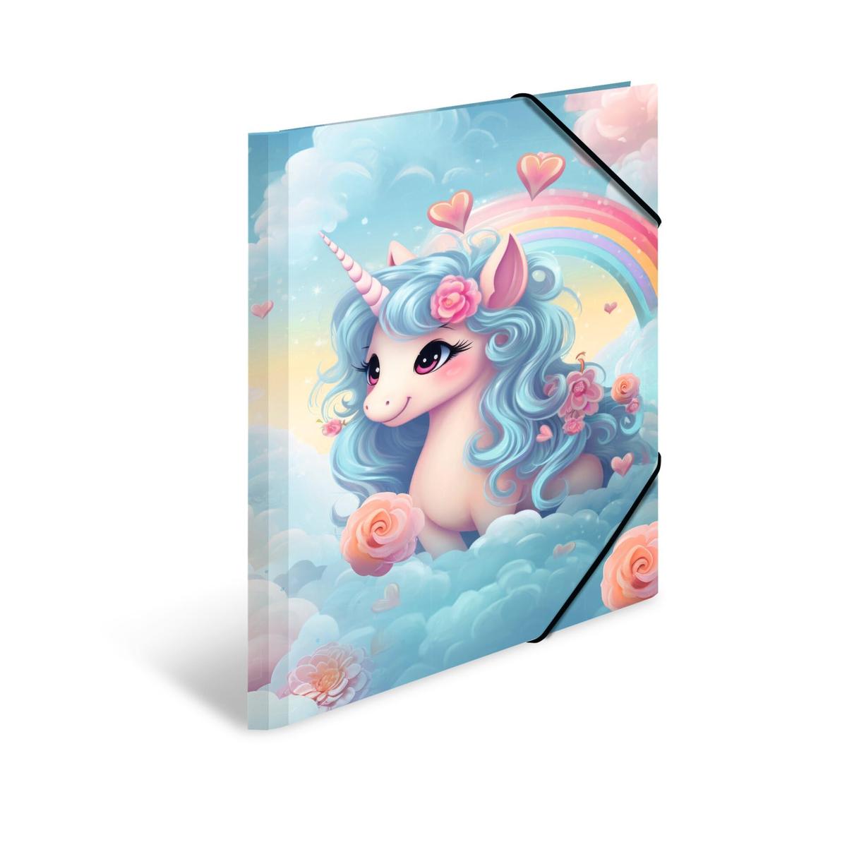 HERMA A3 Cardboard Folder Happy Unicorns Elasticated Corners 3 Flaps