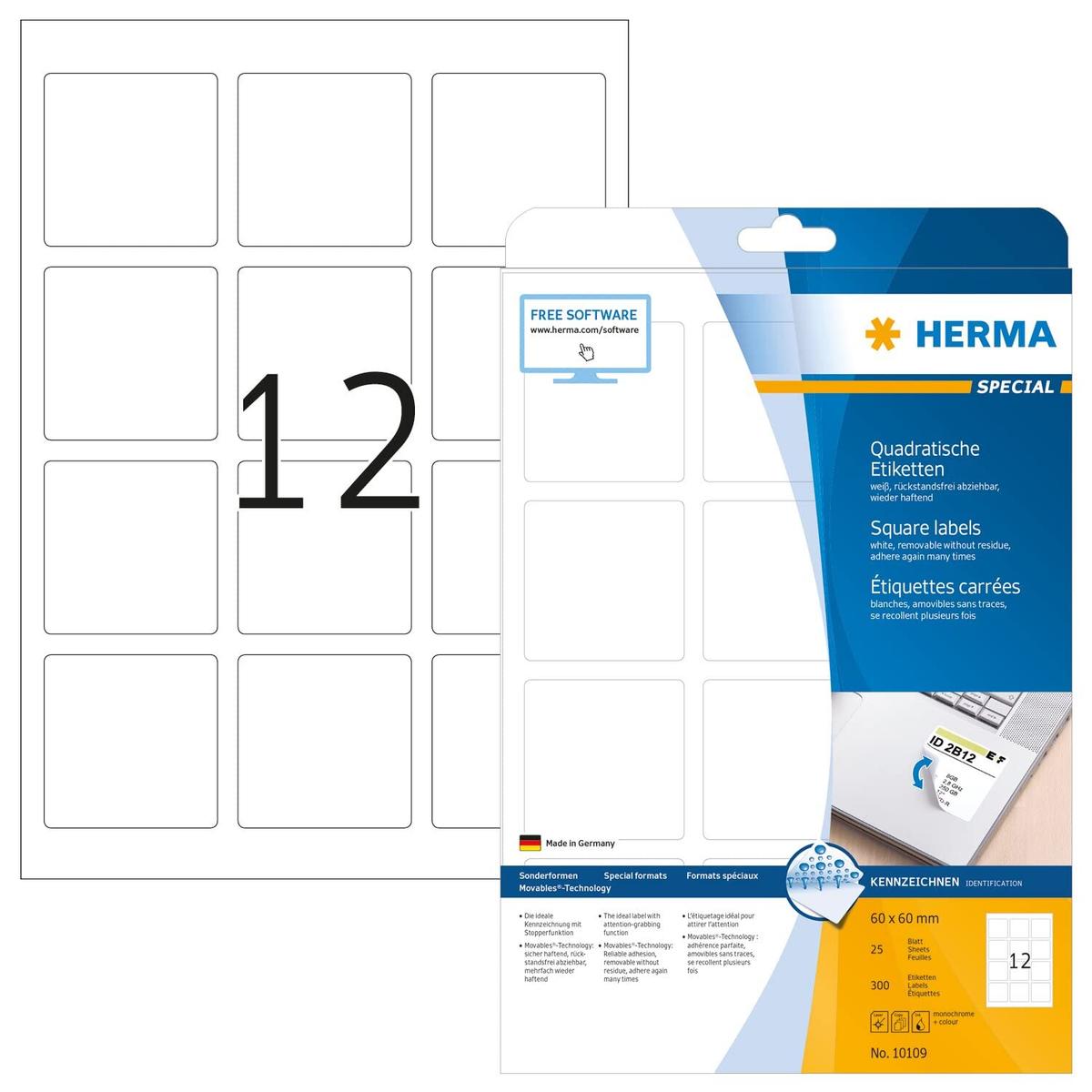 HERMA Labels A4 Size 60 x 60 mm Square Removable 300 Sheets