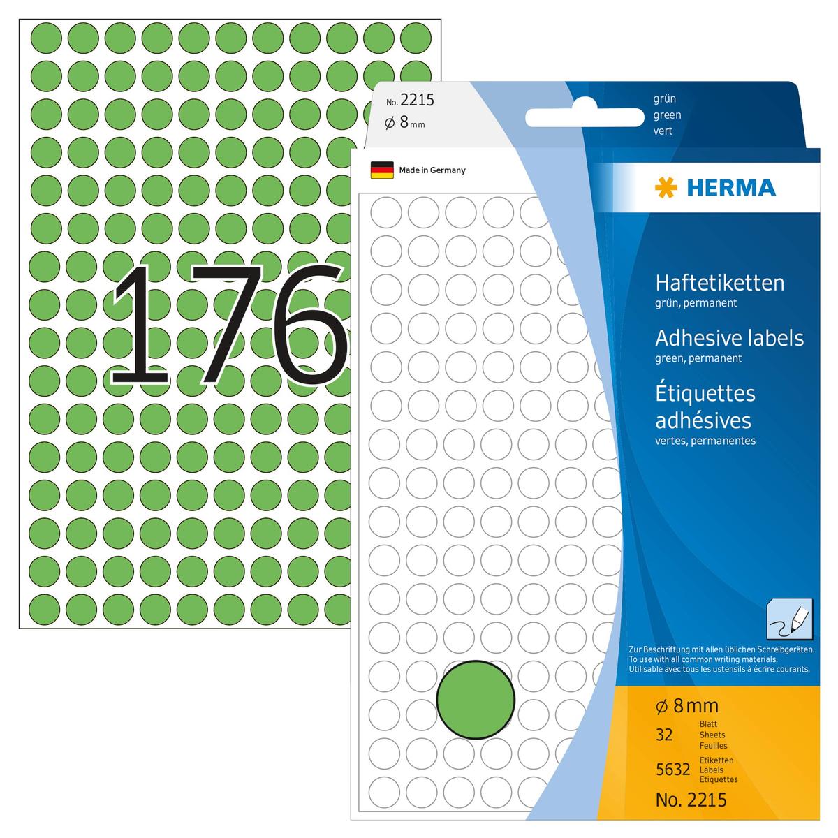 HERMA Vielzwecketiketten grn 8 mm rund Papier 5632 St.