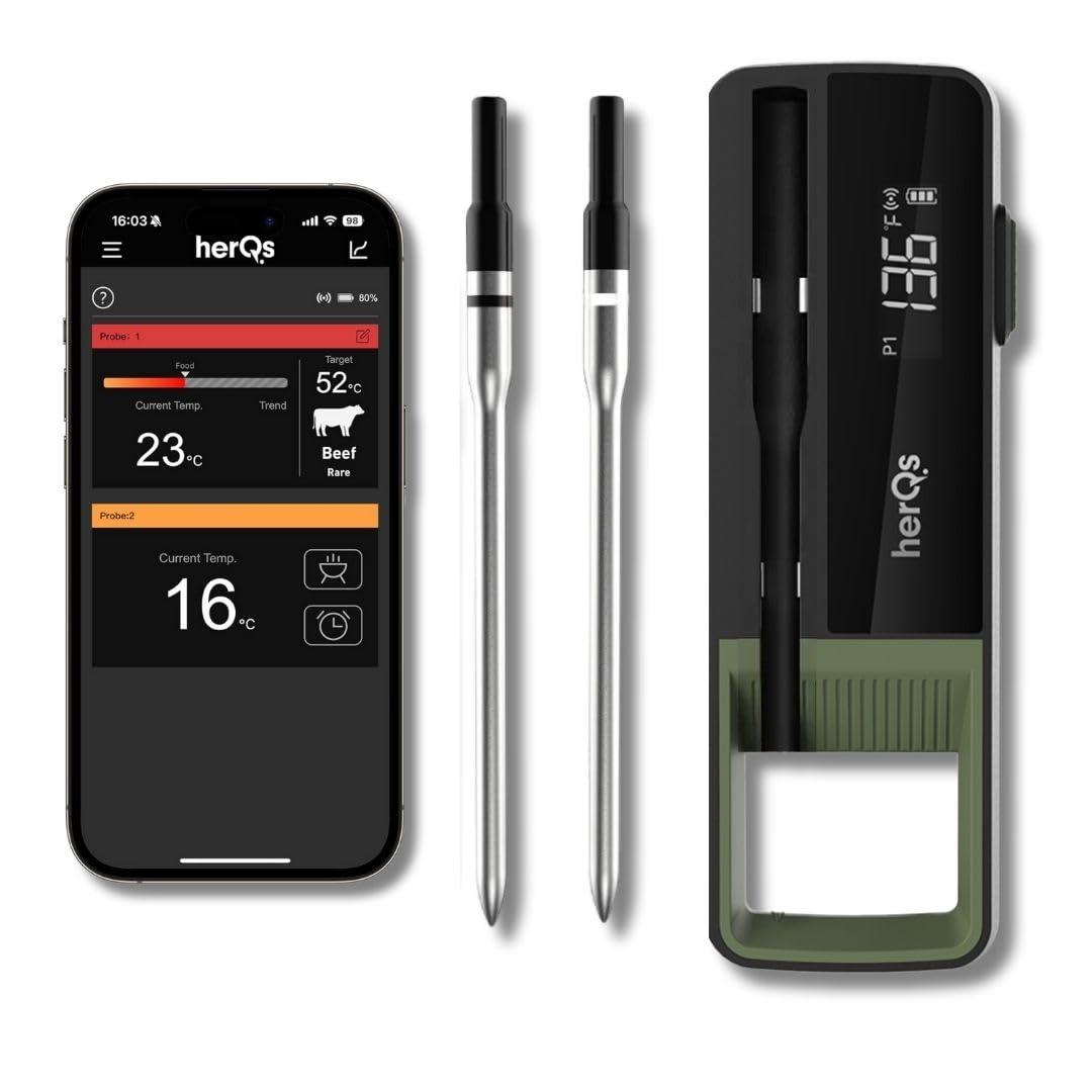 HerQs Double Max Ασύρματο Θερμόμετρο Κρέατος Διπλές Ανιχνεύσεις 100m Εμβέλεια 500C Ακρίβεια