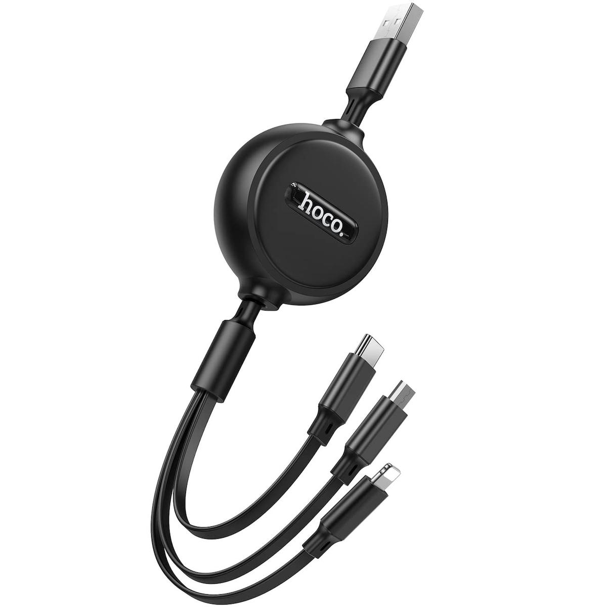 Hoco X75 3 in 1 Charging Cable USB A to Lightning Micro USB USB C 2A 1 m Black