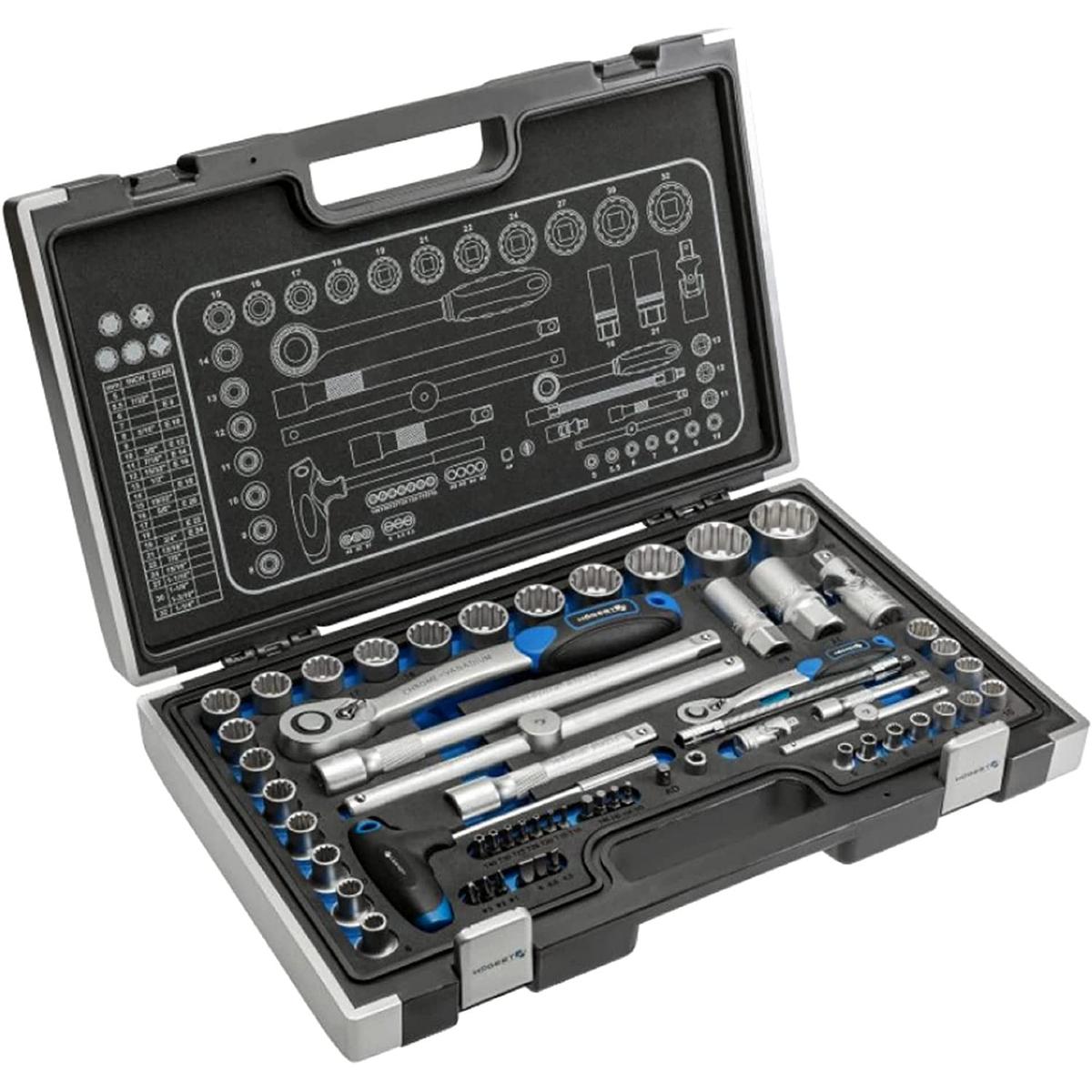 Hogert Technik HT1R470 Tool Set 60 Pieces 1/4 and 1/2 Drive