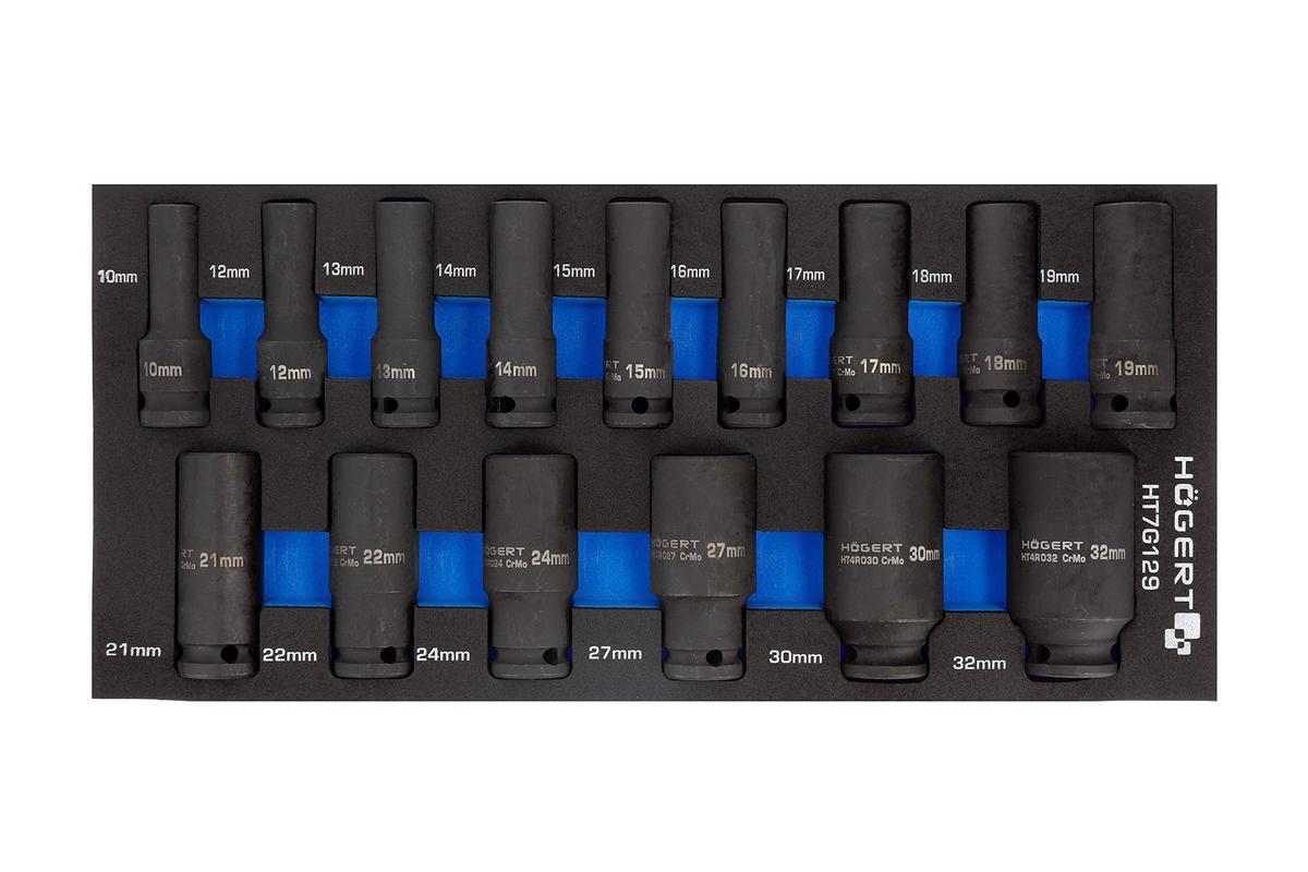 Hogert Technik HT7G129 Impact Socket Set 15 Pieces 1/2 Drive Chrome Molybdenum Steel