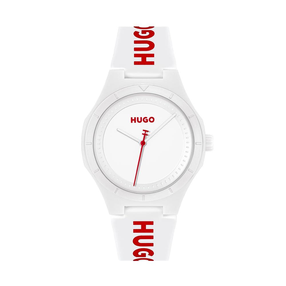 Hugo Lit For Him Collection Men's Watch Analogue Quartz White Dial Silicone Strap 42 mm