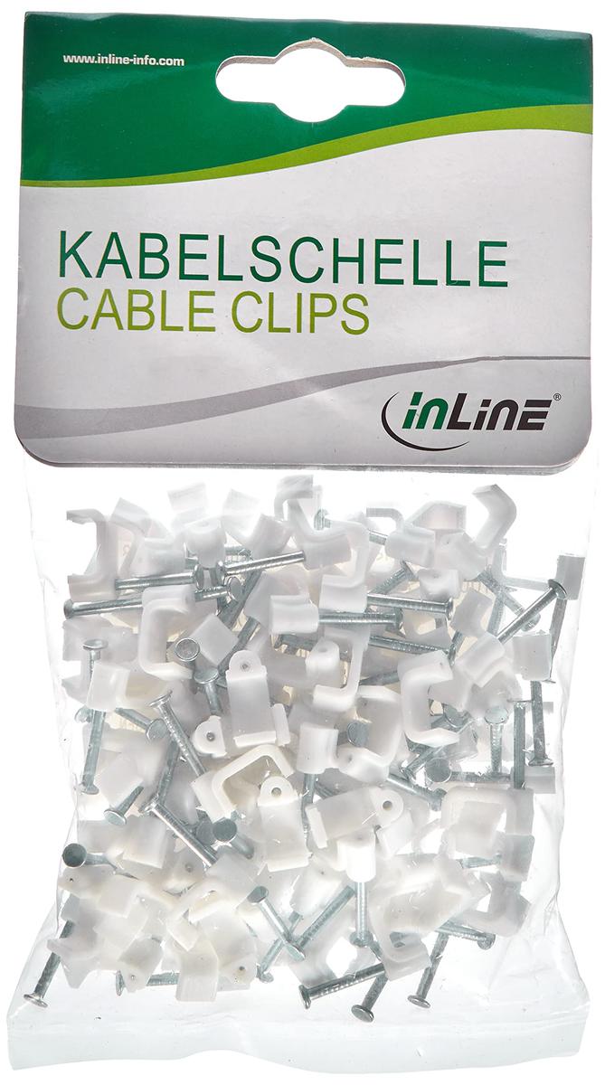 InLine 100 x 10 mm White Flat Cable Clips Plastic With Nail
