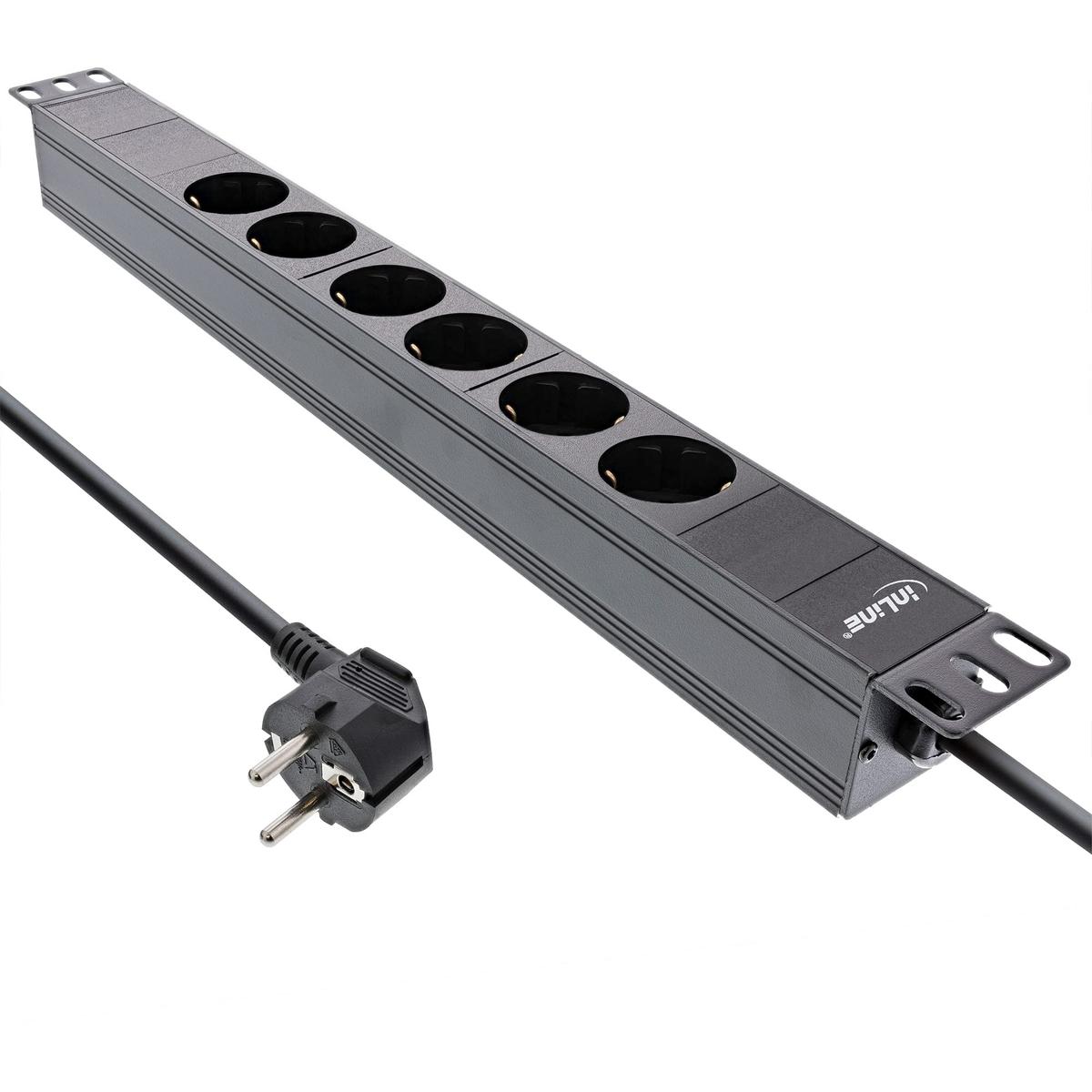 InLine 19 Inch Power Strip 6 Sockets 3680W 2 m Cable Black Aluminium