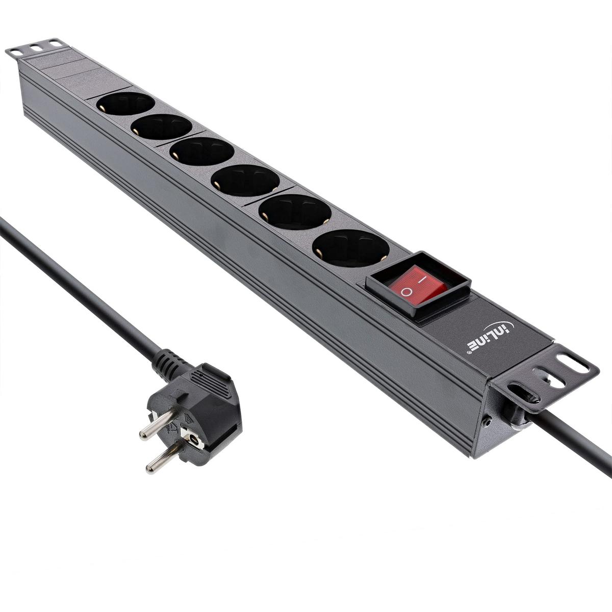 InLine 19 Inch Power Strip 6 Sockets Switch 2 m Cable Black