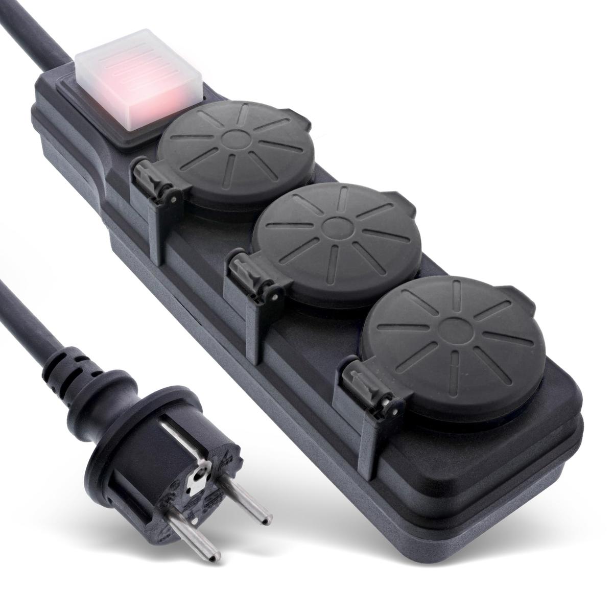 InLine Outdoor Power Strip 3 Socket Outlets IP44 With Switch 10 m Cable