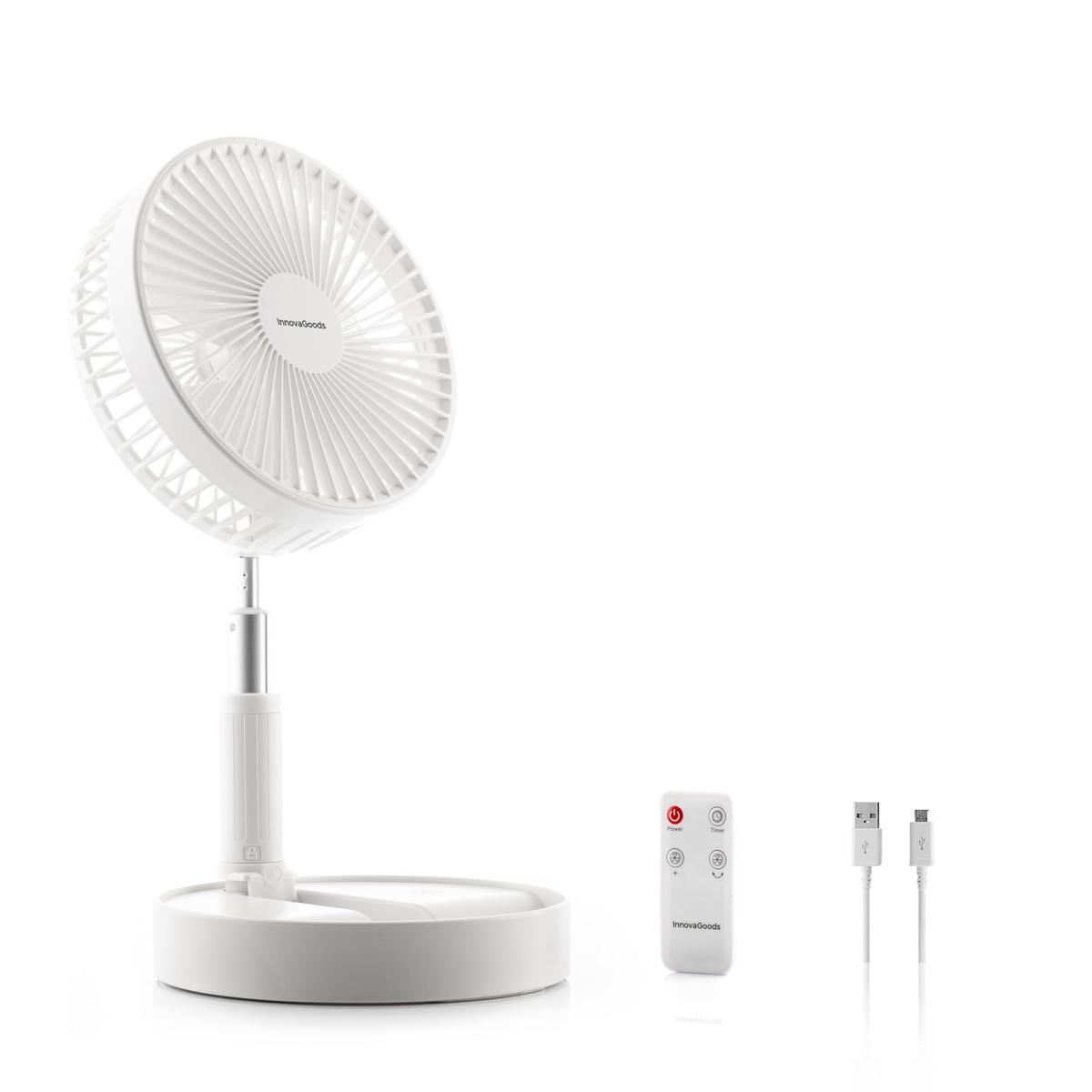 InnovaGoods offers the latest items for your home, such as the 3 in 1 Foldable Rechargeable Fan Fandle InnovaGoods O7,7'' 7200 mAh ! Discover a wide range of high-quality products which stand out for their functionality, efficiency and innovative design: lighting, storage, decoration, air conditioning, garden, pets, cleaning, etc.A folding rechargeable fan that is ideal for enjoying a pleasant freshness anywhere. Extremely lightweight, multifunction, multi-position, silent, 4 speeds, timer, adjustable tilt and height, remote control and USB-C cable.This portable pedestal and desktop fan can be used indoors and outdoors: at home (study, bedroom, lounge, working from home, etc. ), in the office, garden, terrace, camping, etc.Folding design, silent: our folding rechargeable fan is extremely lightweight, easy to carry and store. It folds into itself and is stored in its own base. It is made from ABS, with an extendable aluminium pole and a copper motor. Noise level: