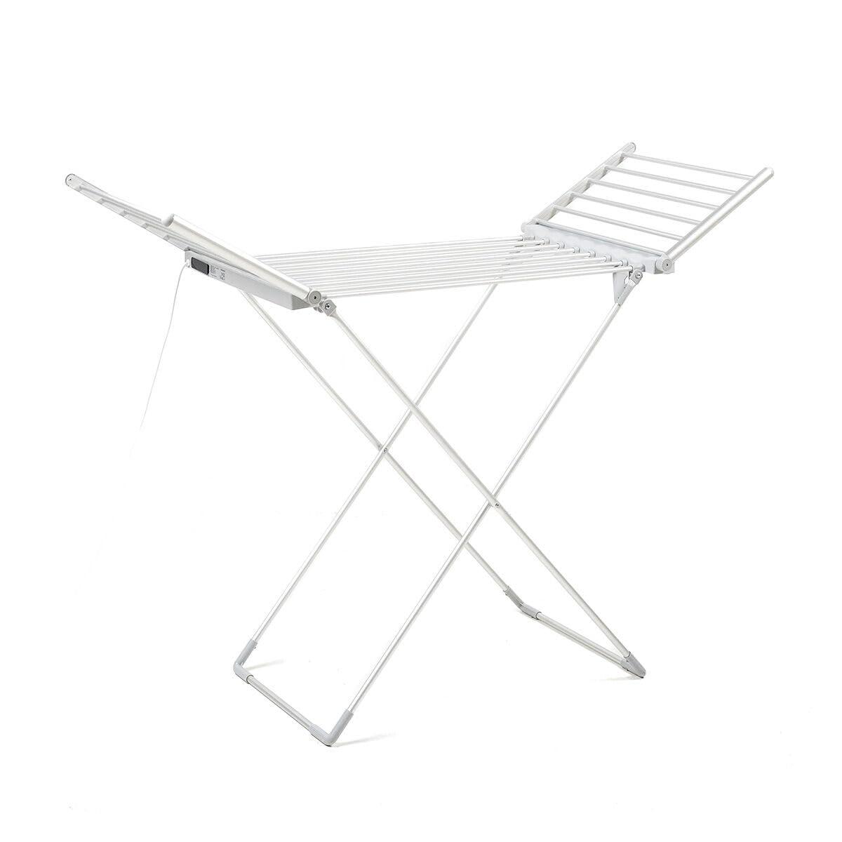 InnovaGoods offers the latest items for your home, such as the Foldable Electric Clothes Dryer with Wings, Touch Screen, Timer, and Temperature Control Warmmat InnovaGoods 230 W 20 Bars ! Discover a wide range of high-quality products which stand out for their functionality, efficiency and innovative design: lighting, storage, decoration, air conditioning, garden, pets, cleaning, etc.This foldable electric drying rack with wings speeds up clothes drying with its 20 heated bars. Ideal for winter, rainy, or humid days.A modern portable drying rack featuring a digital display with touch control panel, adjustable temperature (6 levels: 35-60 oC), and timer (12 h). Lightweight, sturdy, and stable, with an aluminum frame and X-shaped design. Supports up to 15 kg. Power: 230 W.Foldable, electric design: our foldable electric drying rack is lightweight, durable, and safe. Its aluminum frame and crossed X-shape provide greater stability and support. It folds easily, taking up minimal space when stored. Can be placed behind doors, in closets, etc.20 bars, 2 foldable side wings: this rack has 8 central bars and 12 side bars (6 per wing) to increase drying space. Its 20 heated bars dry clothes quickly, even in winter. Over 1 m tall for comfortable use. Suitable for all garment types. Supports up to 15 kg of clothes.6 temperature levels, fast drying: our portable drying rack speeds up drying without damaging clothes. It has a touch button panel (on/off, temperature, time) with a digital display. Allows selection of drying time and temperature level. Adjustable temperature: 35-60 oC. Power: 230 W (low consumption).Timer, automatic shut-off: this modern indoor drying rack includes a timer to set drying time if desired (up to 12 hours). After the selected time, the device switches off automatically.Portable, indoor use: this foldable drying rack is easy to handle and fits any space. Its portable design allows quick and easy movement anywhere in the home. Ideal for indoor use.Material: AluminiumABSpolypropyleneColour: GreyType: Folding Electric ClotheslineCapacity: 20 BarsCharacteristics: TouchscreenFast dryingFolding side wingsAdjustable temperature: 35-60 oCTimer: Up to 12 hMax. supported weight: 15 kgRecommended use: Use indoorsType of plug: FCable length: 140 cmPower: 230 WAC In: 220-240 V / 50 HzApprox. dimensions: 148 x 112 x 54 cmPackaging and manual in 24 languages: English, French, Spanish, German, Italian, Portuguese, Dutch, Polish, Hungarian, Romanian, Danish, Swedish, Finnish, Lithuanian, Norwegian, Slovenian, Greek, Czech, Bulgarian, Croatian, Slovakian, Estonian, Russian and Latvian. WARNINGS: Before plugging in or touching any electrical part, make sure your hands are dry and never immerse the device or its connections in water keep in mind that the bars heat up during use (handle them with gloves or wait for them to cool down), do not exceed the maximum load, and prevent children from climbing on, playing with, or hanging from the drying rack..