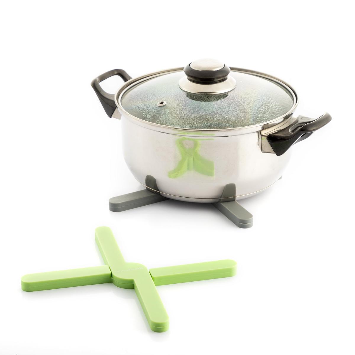 InnovaGoods is here to help you make cooking easy and fun by offering you the best new items for your kitchen, such as the Individual Folding Silicone Trivet Folvet InnovaGoods 2 Units ! Discover a wide range of high-quality items that stand out for their functionality, efficiency and innovative design!These 2 folding silicone trivets protect support surfaces from heat and scratches/abrasions. Ideal for placing saucepans, frying pans, teapots, hot dishes, etc., without damaging tables and worktops. In addition, they are dishwasher safe.These original and modern individual silicone trivets withstand high temperatures. Thanks to their innovative design, they fold easily to save space when putting them away.2 individual trivets: includes 2 individual trivets that prevent damage that can be caused by heat and contact with hot saucepans or frying pans, etc., on support surfaces like tables or worktops. Ideal as a support to prevent burns, scratches, abrasions, etc.Non-slip, heat-resistant: our high quality silicone trivets are non-slip, flexible, soft and long-lasting. They withstand high temperatures, acting like protective thermal insulation and providing a stable and secure hold. They don't deform with use and are resistant to most stains.Folding, multi-position: These folding trivets boast an original design in the shape of a cross with a circle in the centre for greater stability of the support. The angle of aperture can be adjusted to adapt to different sizes and shapes of saucepans, frying pans, etc. They can also be assembled and disassembled easily using pressure.Multifunction: These protective trivets are mainly used on kitchen worktops and dining tables. A wide range of items can be placed on top of them, including kitchenware, utensils, accessories and hot containers such as saucepans, frying pans, bowls, casserole dishes, plates, coffee makers, teapots, etc. Easy to clean and store: our folding silicone trivets fold/unfold fully to make them easy to store and save space in the kitchen drawer or cupboard. They are dishwasher safe for more convenience.Material: SiliconeColour: GreyGreenType: Table MatUnits: 2 UnitsOriginal design: MultifunctionFoldable: Tidy and space savingDetachable: Easy to assemble and disassembleFlexible and adaptable: Multi-positionAnti-deformation: Robust and durableProperties: Soft and pleasant to the touchNon-slip: Firm holdCharacteristics: High-temperature resistorEasy to clean: Suitable for dishwashersApprox. dimensions: 2x (20 x 0,5 x 20 cm)Packaging in 24 languages: English, French, Spanish, German, Italian, Portuguese, Dutch, Polish, Hungarian, Romanian, Danish, Swedish, Finnish, Lithuanian, Norwegian, Slovenian, Greek, Czech, Bulgarian, Croatian, Slovakian, Estonian, Russian and Latvian.