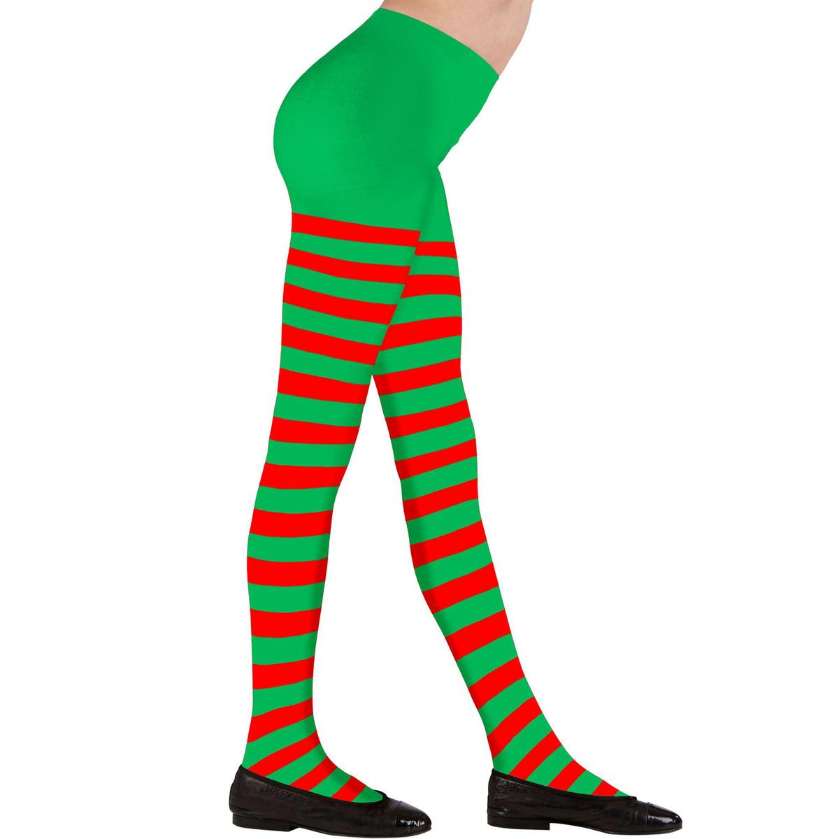 Elf Kids Christmas Tights Green Red Striped 11 to 14 Years
