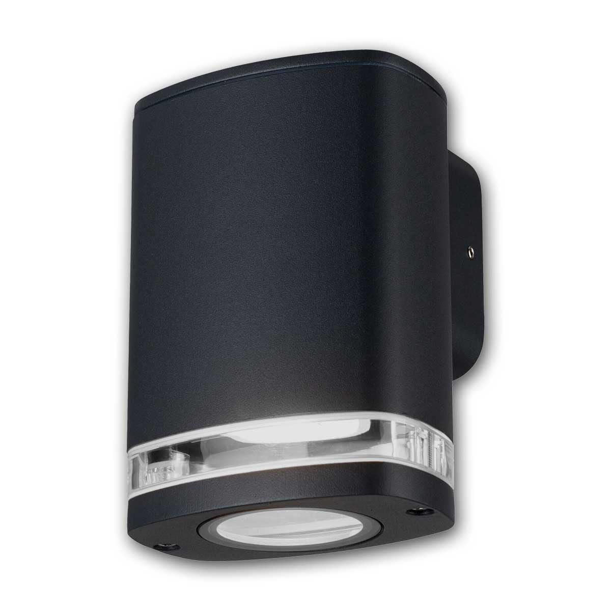 Φωτιστικό πρόσοψης, Μήκος [mm]: 100, Πλάτος [mm]: 100, Ύψος [mm]: 140, Ονομαστική συχνότητα [Hz]: 50, Κατεύθυνση φωτισμού: πάνω ή κάτω, Κλάση προστασίας από ηλεκτροπληξία: I, Χρώμα: μαύρο, Υλικό καπέλου: γυαλί/PC, Υλικό σώματος: κράμα αλουμινίου, Τοποθέτηση: επίτοιχη, Χώρος εφαρμογής: εσωτερικός και εξωτερικός χώρος, Ελάχιστη απόσταση από το φωτιζόμενο αντικείμενο: 0,5m.
