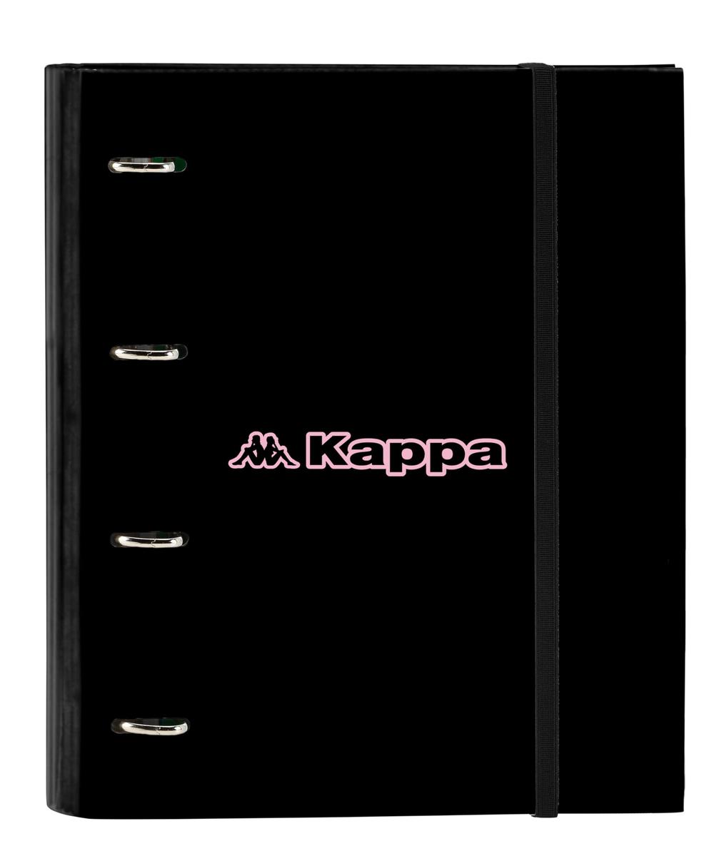 Return to the office without forgetting a single thing! Buy Ring binder Kappa Silver pink Black Pink 27 x 32 x 3.5 cm and be the envy of your colleagues!Type: Ring binderColour: BlackPinkCharacteristics: Hard coverGrid sheetsGender: YoungType of fastening: ElasticWeight: 80 g/m^2Includes: Replacement (100 Sheets)Compartments: Interior OrganiserRings: 4 Rings (35 mm)Squared: 5 mmApprox. dimensions: 27 x 32 x 3.5 cm