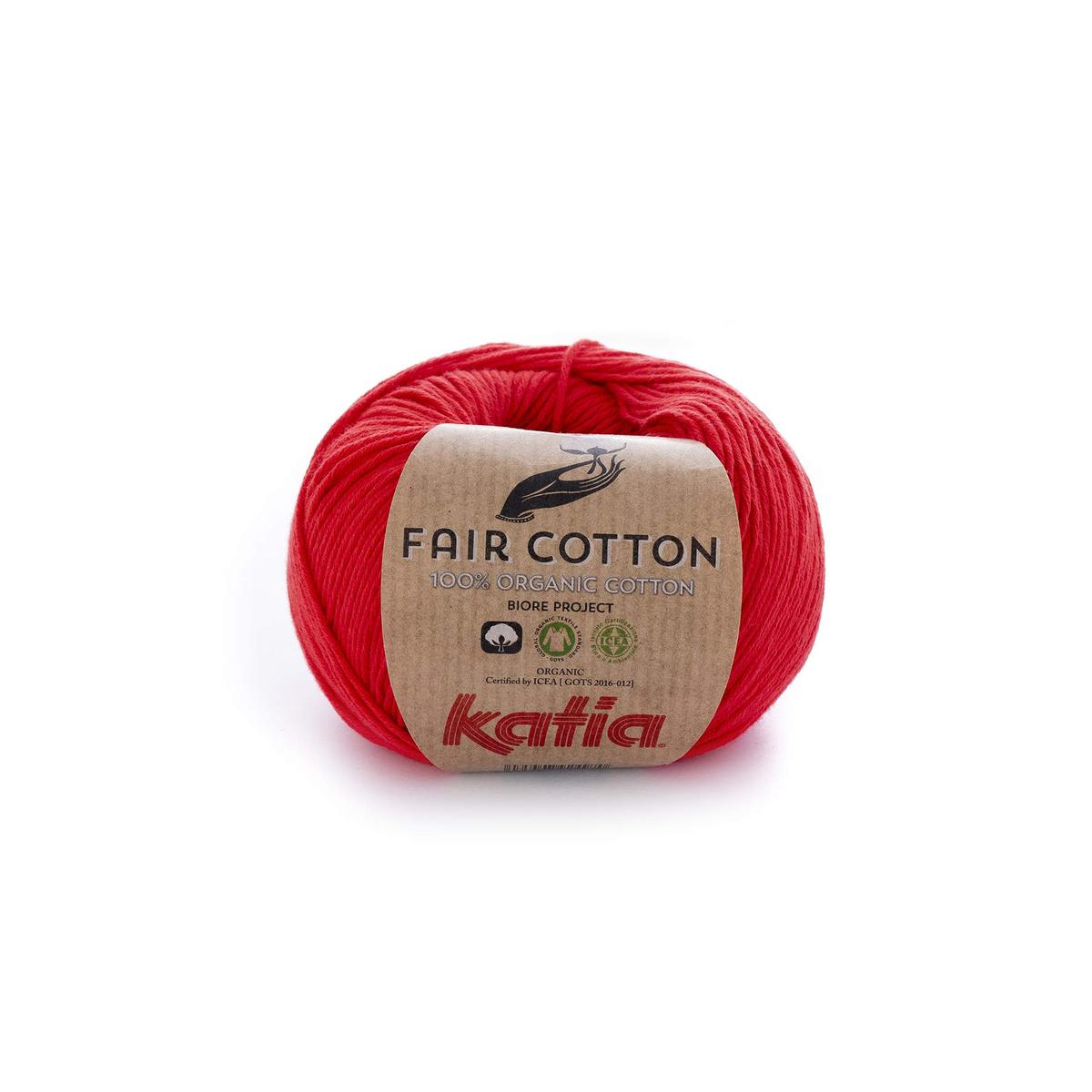 Βιολογικό βαμβάκι, σεβασμό στο περιβάλλον και χωρίς επικίνδυνες ουσίες. Ιδανικό βαμβάκι για ευαίσθητα δέρματα, ιδιαίτερα κατάλληλο για μπουφάν μωρού, άνετα φορέματα ενός κομματιού και μαλακές κουβέρτες. Το Fair Cotton είναι επίσης κατάλληλο για καλοκαιρινά μπλουζάκια, ελαφρά φορέματα και φούτερ παιδιών. Απαιτούνται 6 μπάλες νήματος για να φτιάξετε ένα φούτερ κοντομάνικο μεγέθους 42 γυναικών. Ένταση πλεξίματος: 10 x 10 cm = 27 sts x 34 rows.