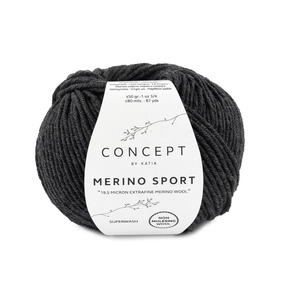 Katia Merino Sport Yarn 402 Very Dark Grey Wool Blend