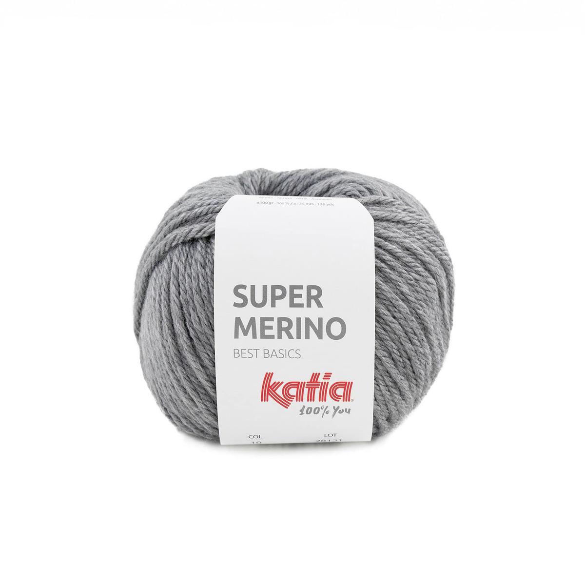 Βασικό νήμα κατασκευασμένο από μείγμα ακρυλικού και μαλλιού merino. Το νήμα διατίθεται σε ευρύ φάσμα φυσικών, παστέλ και ζωηρών χρωμάτων κατάλληλων για όλα τα είδη έργων πλεξίματος και άμεσης δουλειάς. Το μεσαίο πάχος του κάνει το Super Merino το ιδανικό νήμα για να μάθετε να πλέκετε το πρώτο σας πουλόβερ ή να φτιάξετε το πρώτο σας κουβέρτα άμεσης δουλειάς. Σύνθεση: Ακρυλικό 50%, Merino 50%, Βάρος: 100 g Μήκος Νήματος: 125 m Πάχος: 4 Re