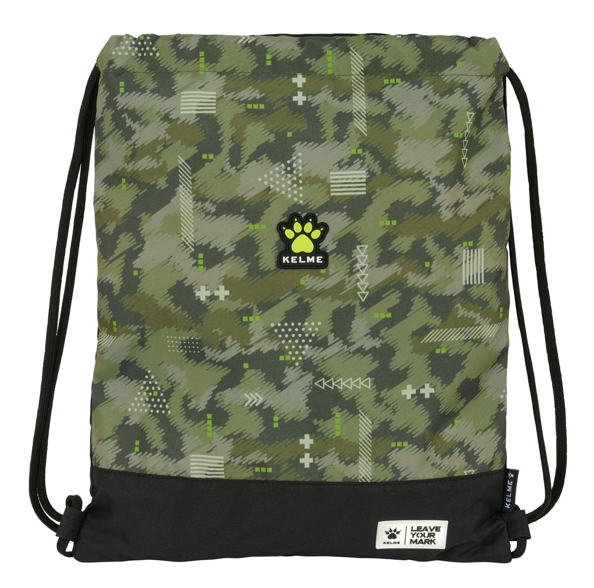 Return to the office without forgetting a single thing! Buy Backpack with Strings Kelme Travel Black Green 35 x 40 x 1 cm and be the envy of your colleagues!Gender: Children'sType: Backpack with StringsSchoolColour: BlackGreenMaterial: PolyesterType of fastening: Shoelace, cordIncludes: Interior pocketApprox. dimensions: 35 x 40 x 1 cm