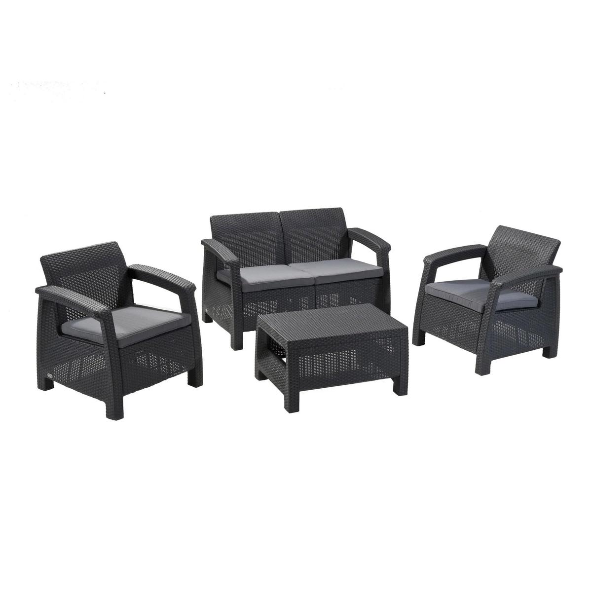 Keter Corfu Set Garden Furniture 3 Seater Sofa + 1 Armchair Anthracite/Grey