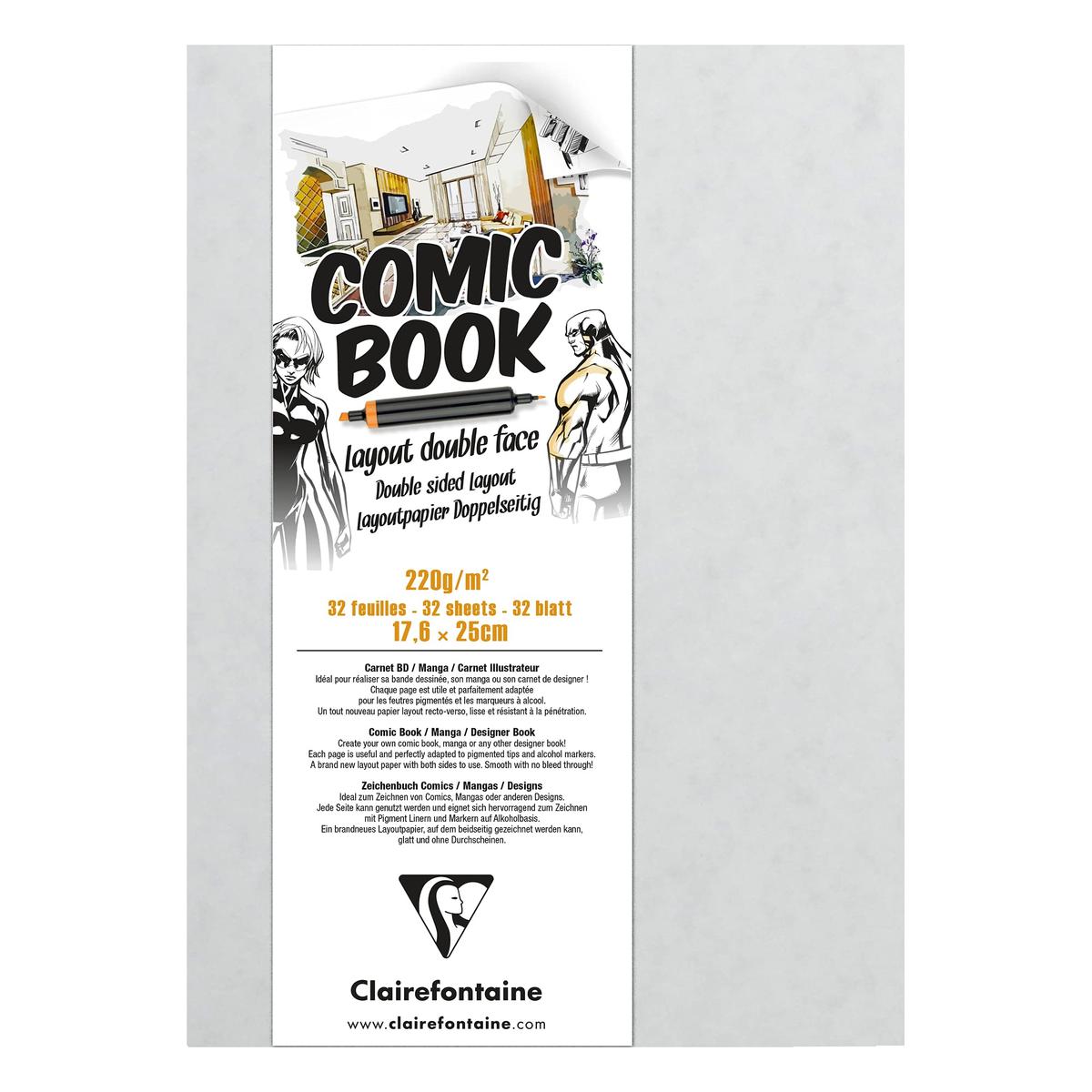 Clairefontaine Comic Book Layout Paper Double Sided 17.6 x 25 cm 220 g 32 Sheets