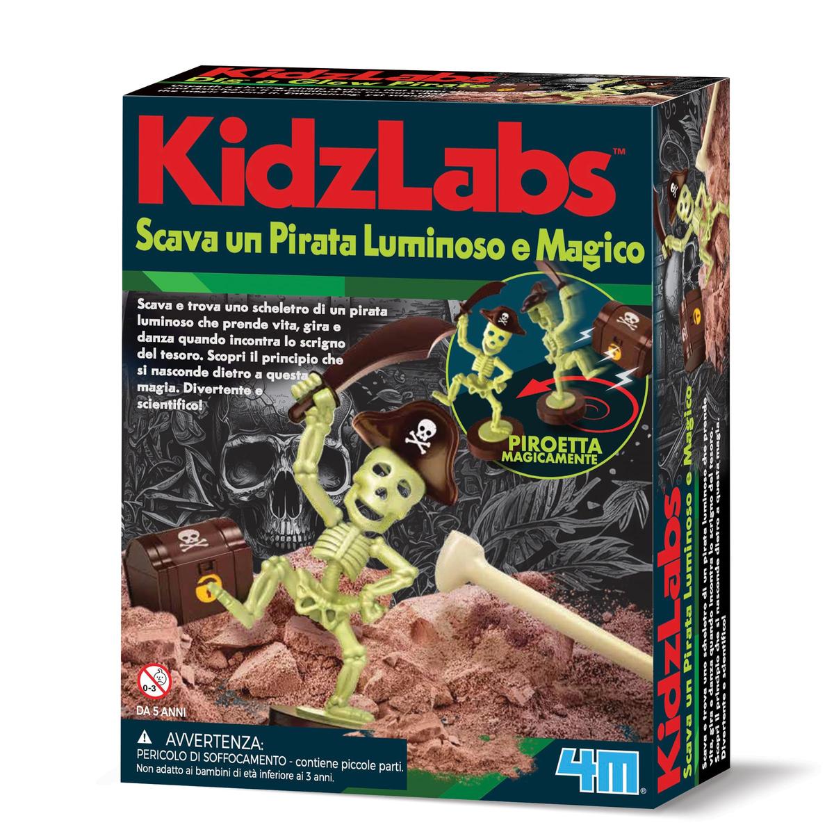 Scava e trova lo scheletro di un pirata luminoso che prende vita e danza se incontra lo scrigno del tesoro. Divertente e scientifico!