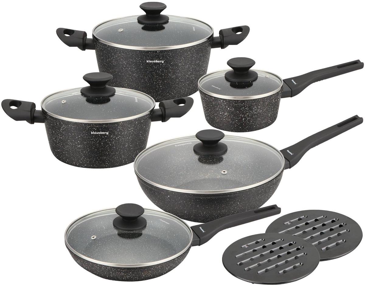 Klausberg KB-7657 Marble Coated Cookware Set 12 Pieces Black Aluminum