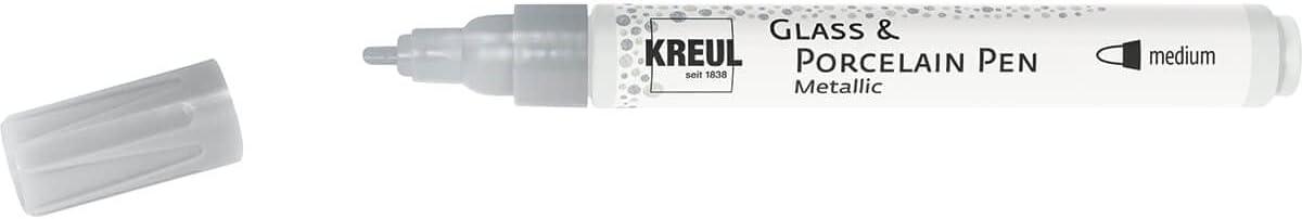 Πρέπει να είναι κομψό, να λαμπρύνει και να λαμπάζει. Με τα μαρκαδόρους KREUL Glass & Porcelain Metallic, οι δημιουργοί φέρνουν μεταλλικό γυαλιστερό σε κούπες, ποτήρια, πιάτα, βάζα, μπολ δημητριακών & Co. Τα χρώματα γυαλιού και πορσελάνης σε στυλό είναι με βάση το νερό και είναι ιδανικά για διακοσμητικά σχέδια σε γυαλί, πορσελάνη, κεραμικά, μέταλλο, ακρυλικό και καθρέφτες. - Λαμπερό χρώμα γυαλιού και πορσελάνης Κάλυψη, ανθεκτικό στο φως Με βάση το νερό Για ζωγραφική σε