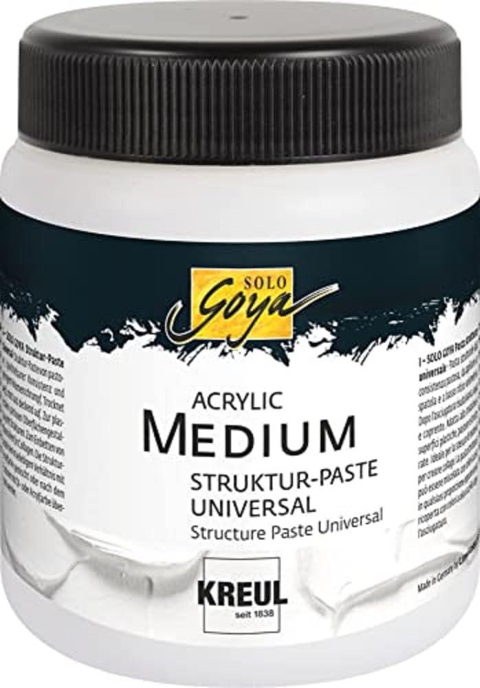 Ακρυλική τέχνη σε νέα διάσταση. Με το SOLO GOYA Ακρυλικό Μεσο, δημιουργούνται τρισδιάστατα εφέ και οι συνθέσεις εικόνων σε καμβά λαμβάνουν ελκυστικό βάθος εικόνας και μεγάλη εκφραστικότητα. Δημιουργείται όχι μόνο ένας οπτικός αλλά και ένας τακτικός κόσμος εμπειρίας στον καμβά όταν ακρυλικά χρώματα και κόλλες δομής συναντιούνται. Οι κόλλες δομής είναι κατάλληλες για πλαστικό, παχύ σχεδιασμό επιφάνειας