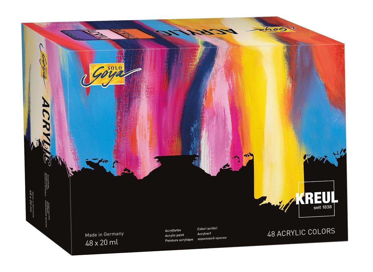 Σετ 48 ακρυλικών σωληναρίων 20 ml. Οι αποχρώσεις χρωμάτων και οι ενδιάμεσες αποχρώσεις μετατρέπουν τις εικόνες σε εξεζητημένα έργα τέχνης. Με το SOLO GOYA Acrylic Set των 48 σωληναρίων 20 ml, οι καλλιτέχνες θα έχουν πάντα το τέλειο χρώμα στη διάθεσή τους. Το σετ ακρυλικών μπογιών καλλιτεχνών υψηλής περιεκτικότητας σε χρωστικές ουσίες σε ποιότητα στούντιο αποτελείται από 48 χρώματα, δηλαδή σχεδόν το πλήρες φάσμα των ακρυλικών μπογιών καλλιτεχνών SOLO GOYA