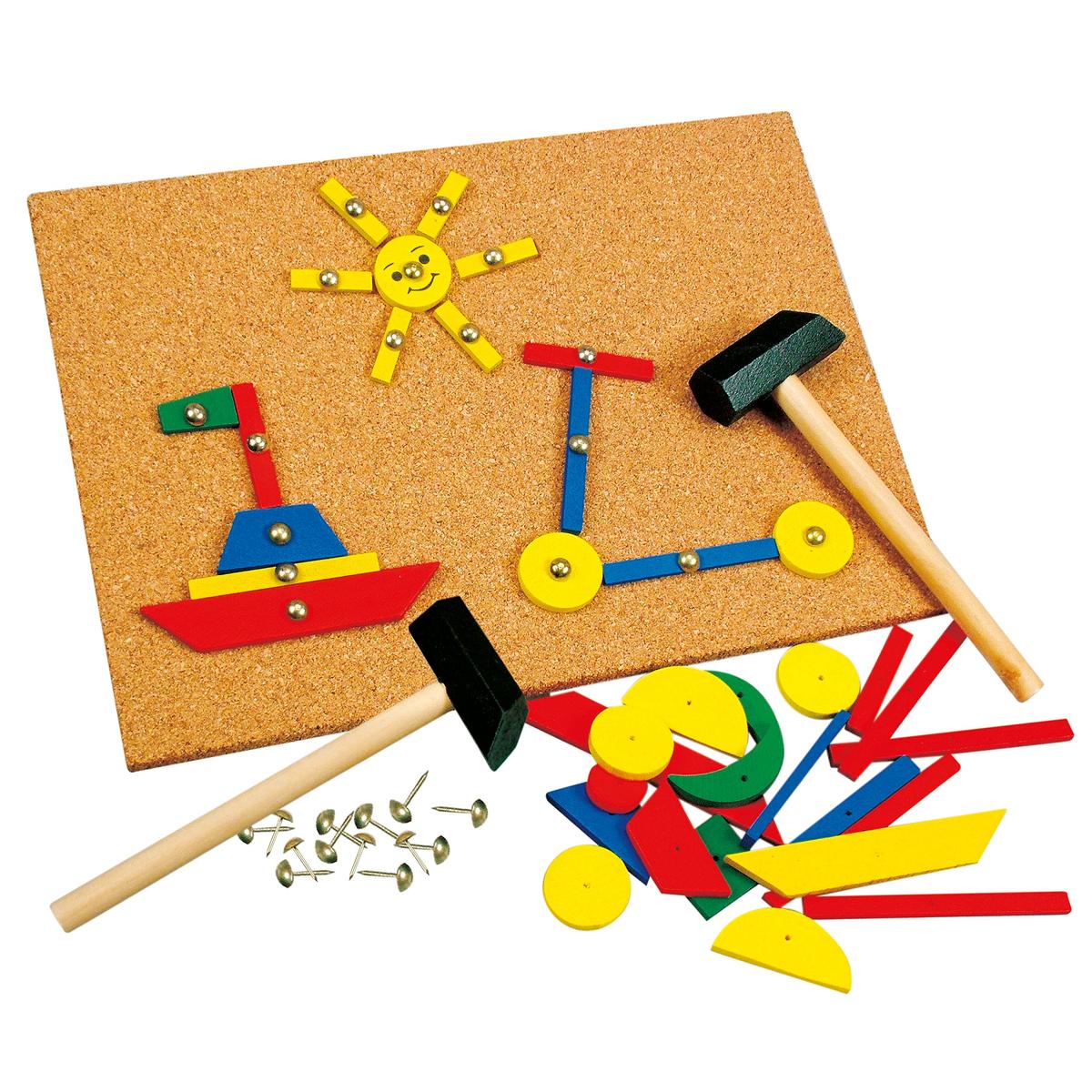 Ξύλινο Σετ Σανίδα Φελλού με Σφυρί και Καρφιά 243 Κομμάτια 26 x 18,5 x 3 εκ.