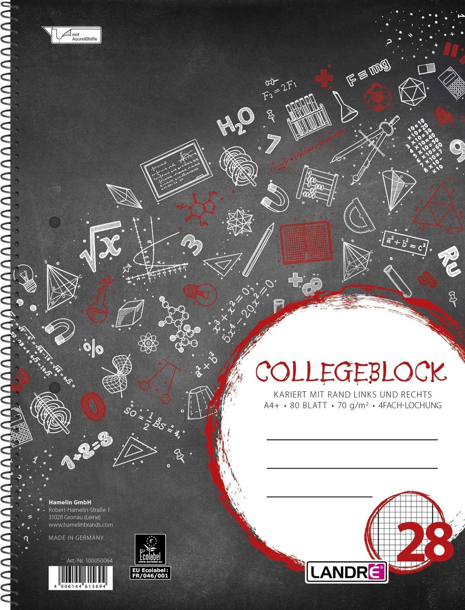 LANDRE College Block A4 80 Sheets 4 Hole Punched