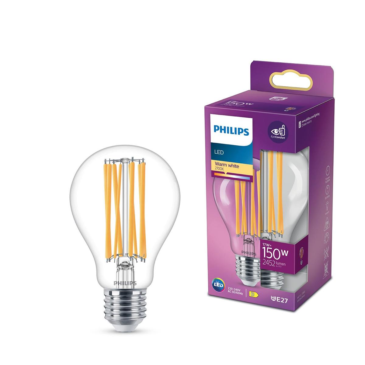 Λάμπα LED PHILIPS, E27, 17 W, ισοδύναμη 150 W, 2700 K, 2452 lm, μη ρυθμιζόμενη