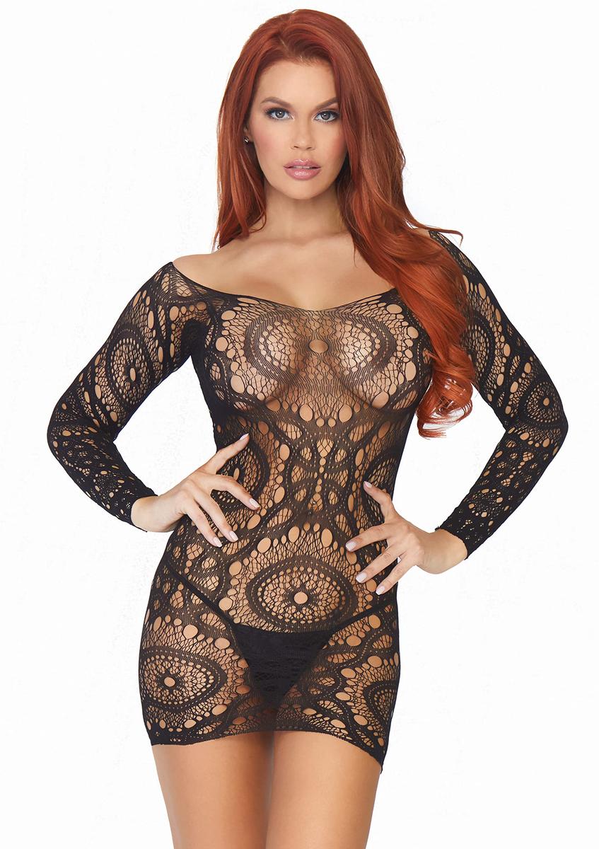 Leg Avenue Lace Long Sleeved Mini Dress One Size Black