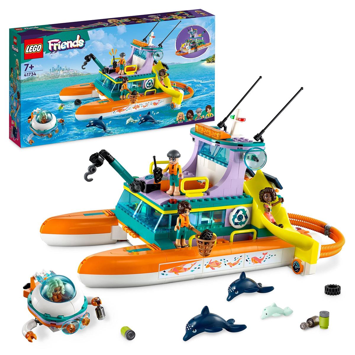 LEGO Friends Σκάφος Διάσωσης Θάλασσας 41734 Κατάμαραν Παιχνίδι με Υποβρύχιο και Σετ Διάσωσης Ζώων