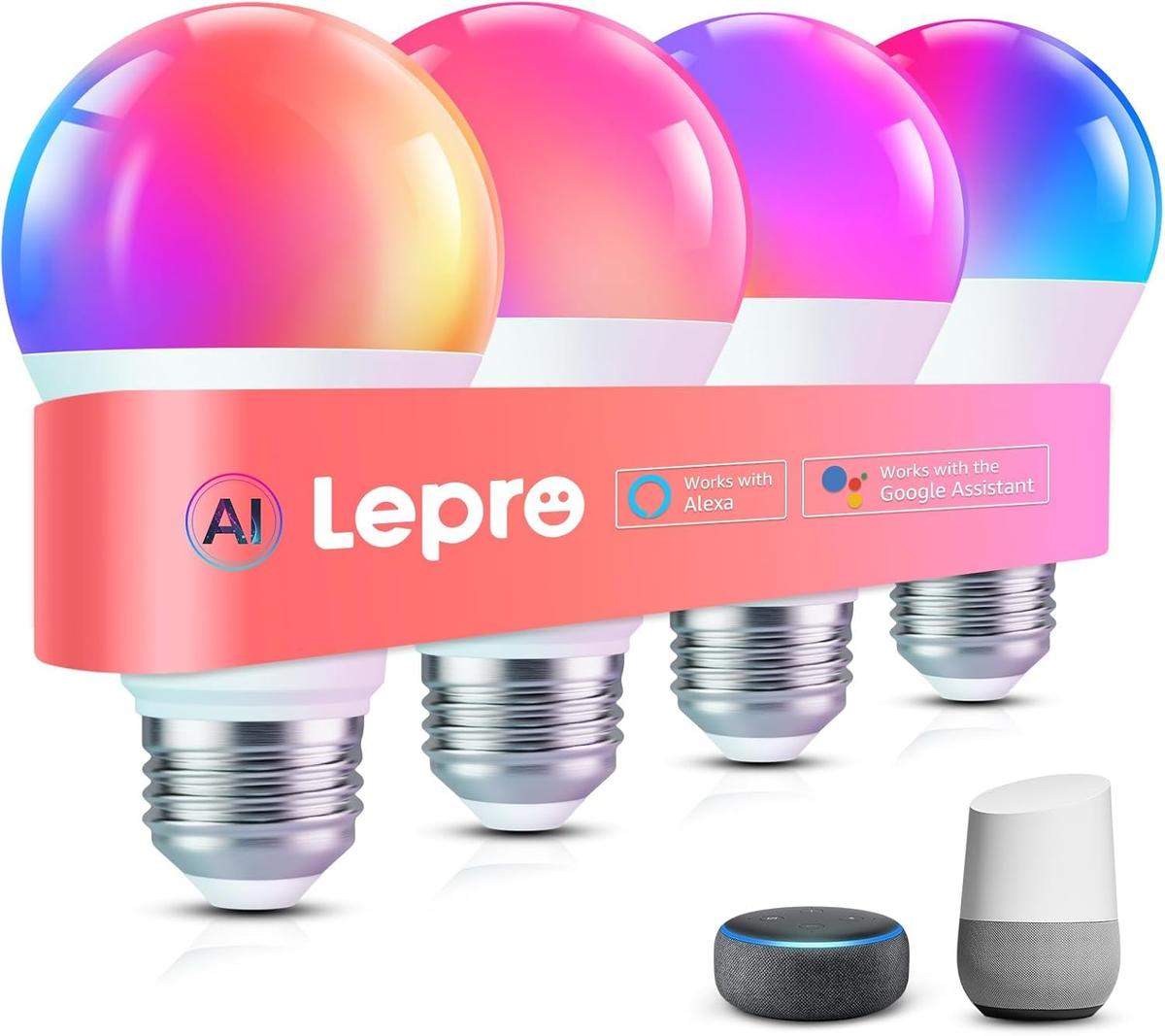 Lepro B1 AI Έξυπνη Λάμπα E27 4 Pack RGB και Ρυθμιζόμενο Λευκό Φως Wi-Fi και Bluetooth Έλεγχος