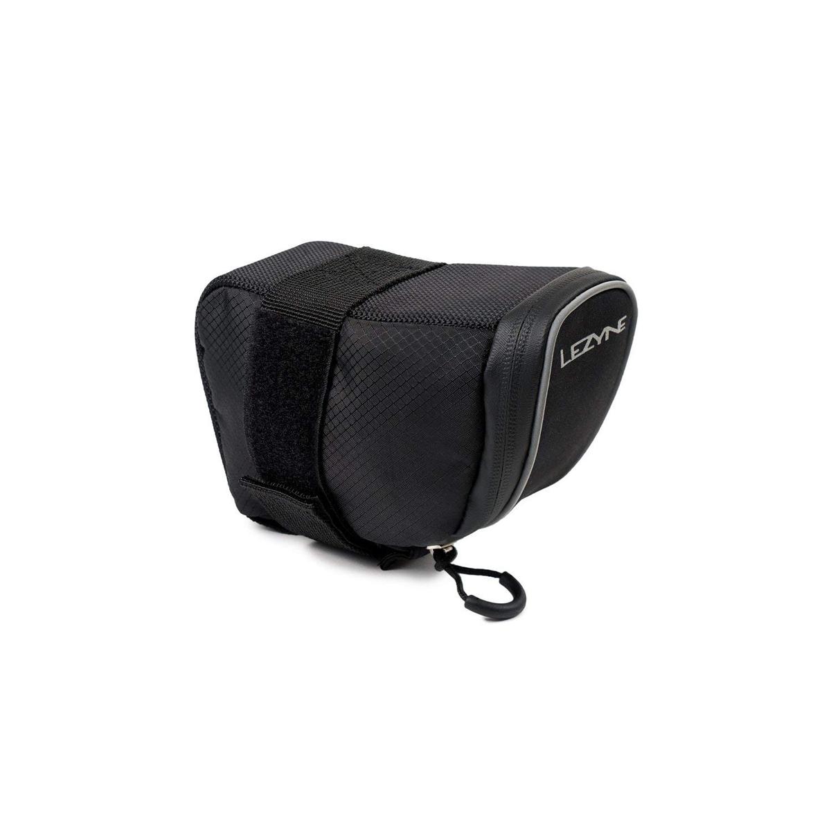 Compact, aero-shaped saddle bag. Large elastic nylon strap secures caddy to the seat rails. Durable woven nylon construction. Labeled internal organizational pockets. External, quick access multi-tool sleeve. Water resistant zipper with large pull loop.Micro Caddy XL: Fits one large tube, or two medium tubes, plus some extra repair accessories (depending on tube size). External pocket fits one medium multi tool.
